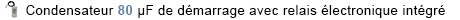 Donc: 5.7A * 13.8466 = 78.93 soit un condensateur permanent d'une capacité de 80 µF