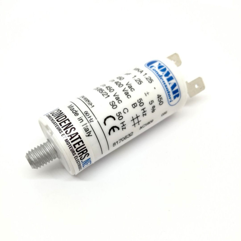 Condensateur permanent 1.25µf 450V à cosses pour démarrage moteur électrique monophasé
